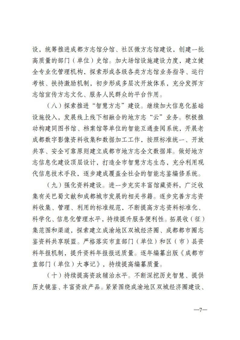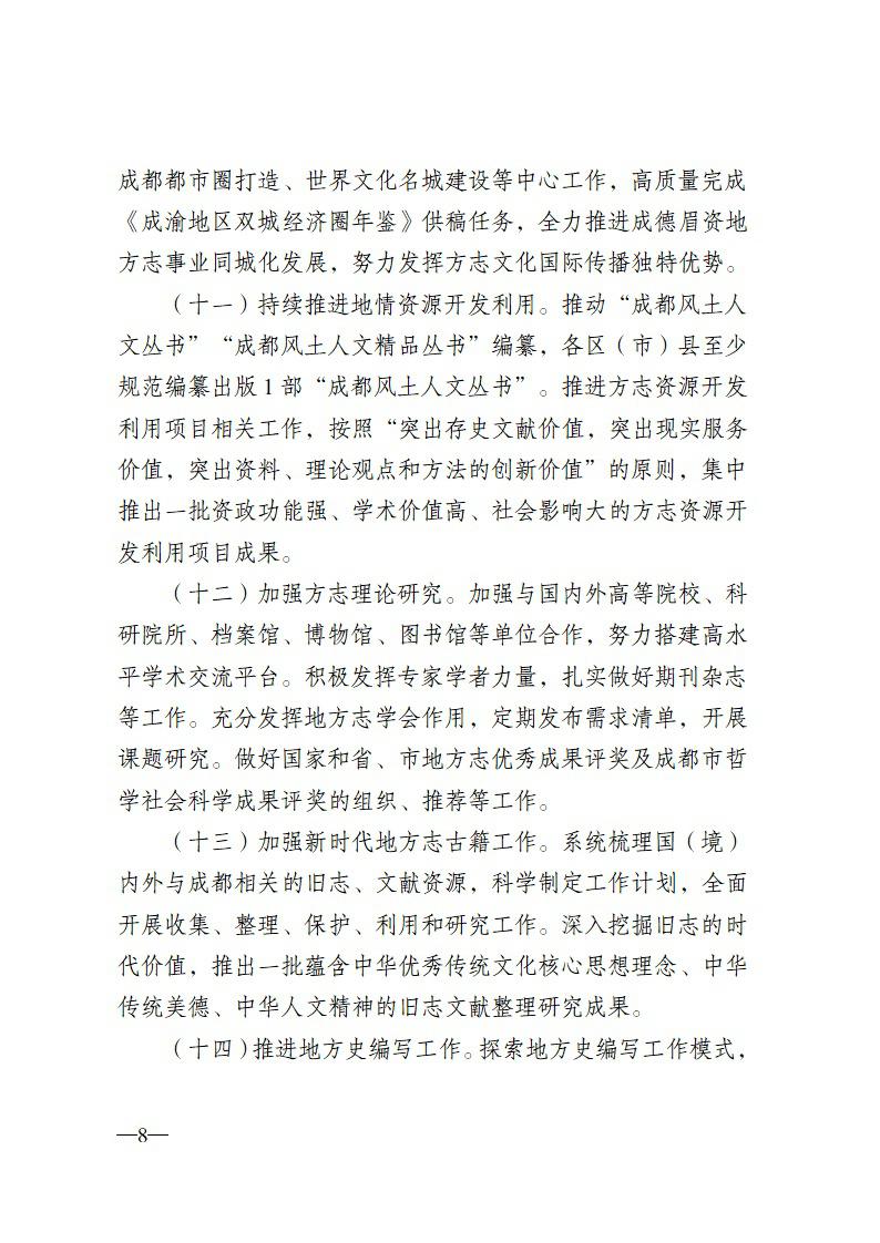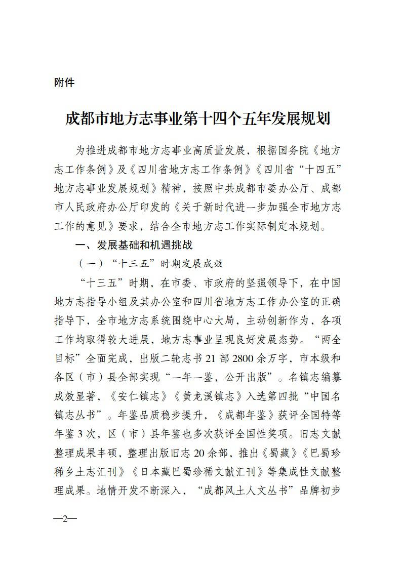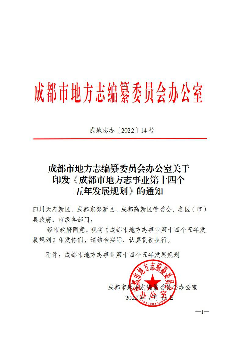 成都市地方志编纂委员会办公室关于印发《成都市地方志事业第十四个五年发展规划》的通知